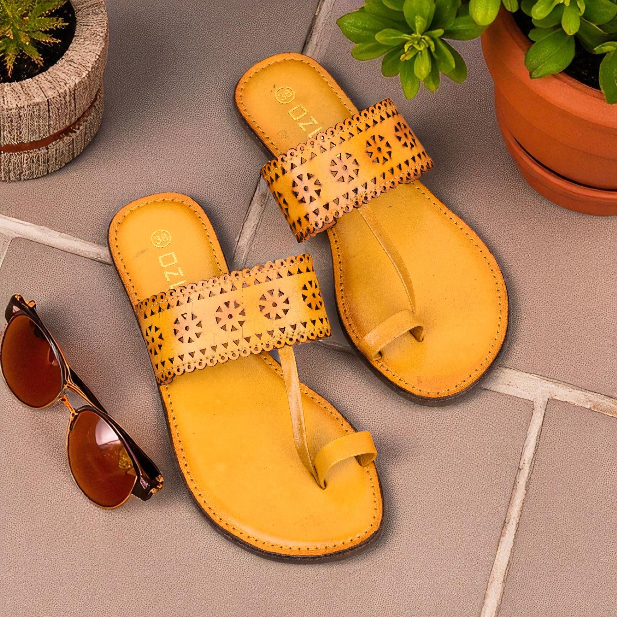 OZURI Women’s Stylish Embellished Flat Sandals – Comfortable Daily Wear Slip-On(10602)