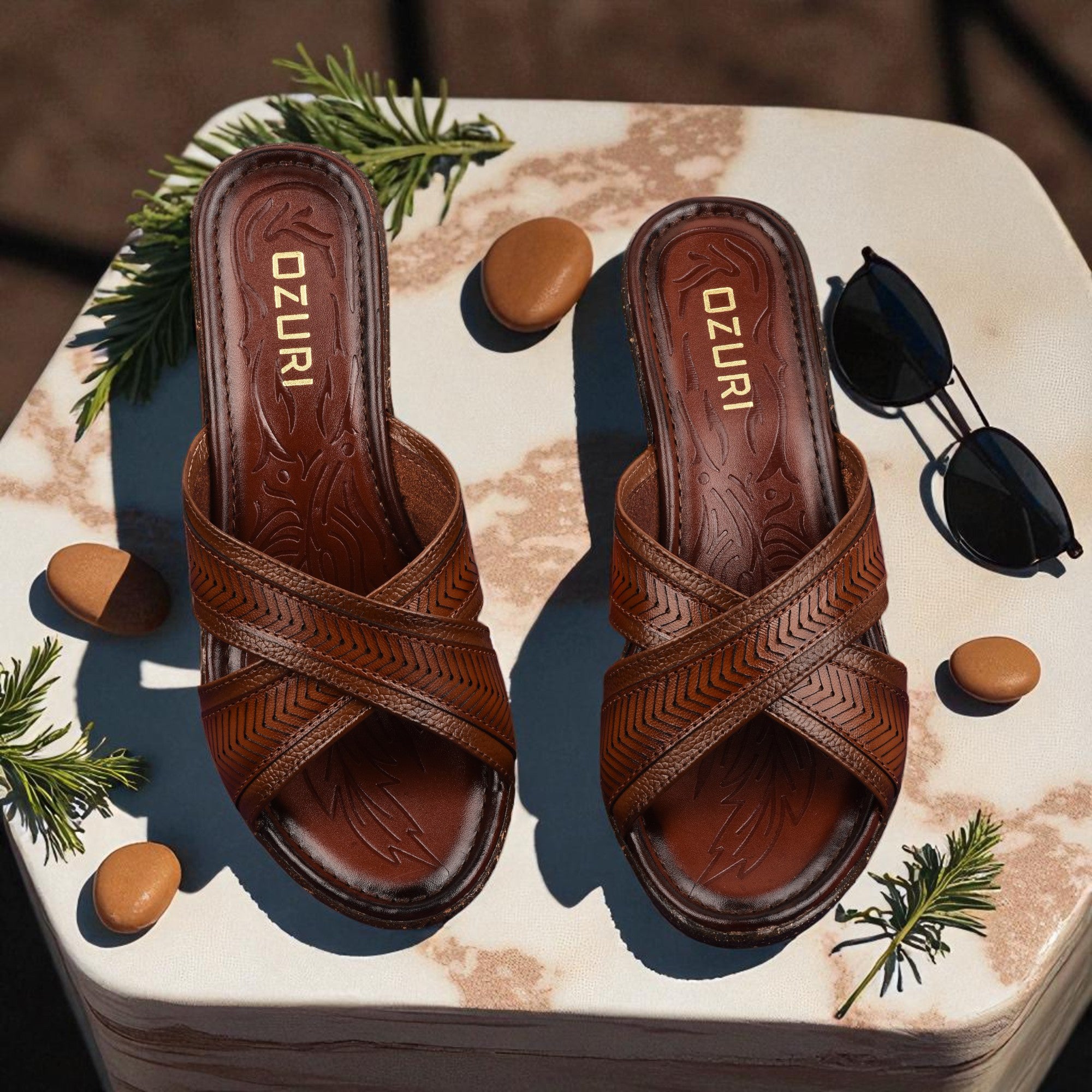 Ozuri Women’s Cross Strap Wedge Slip-On Sandals